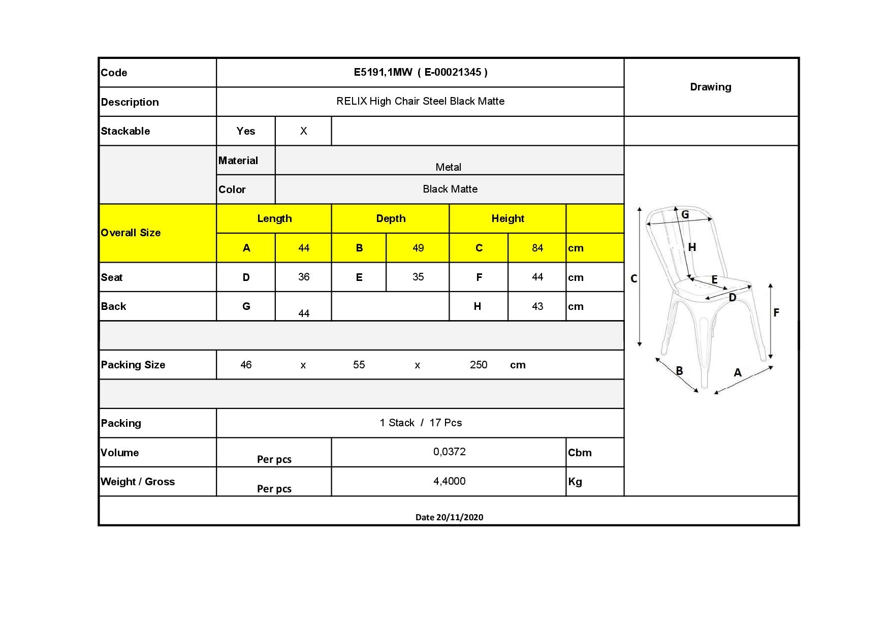 Καρέκλα - Μέταλλο Βαφή Μαύρο Extra Matte - Στοιβαζόμενη