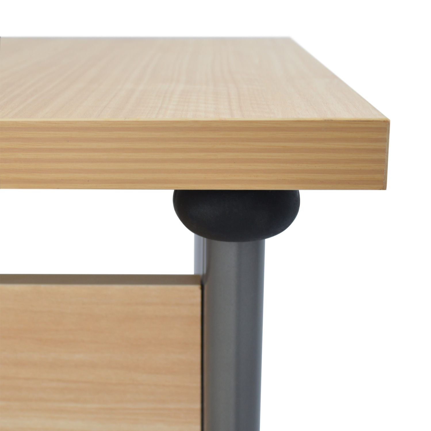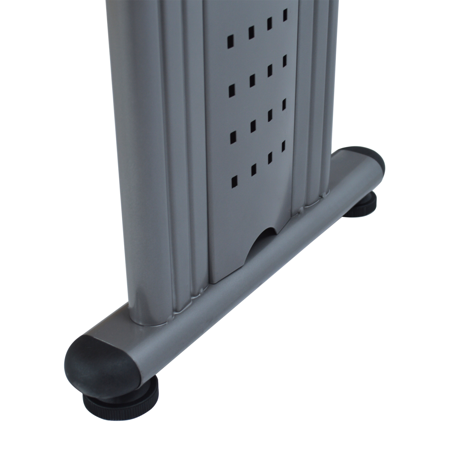 Με δύο εισόδους καλωδίων και πόδια μεταλλικά 3τμχ(στις 3 γωνίες του γραφείου) σε χρώμα γκρι.<br />