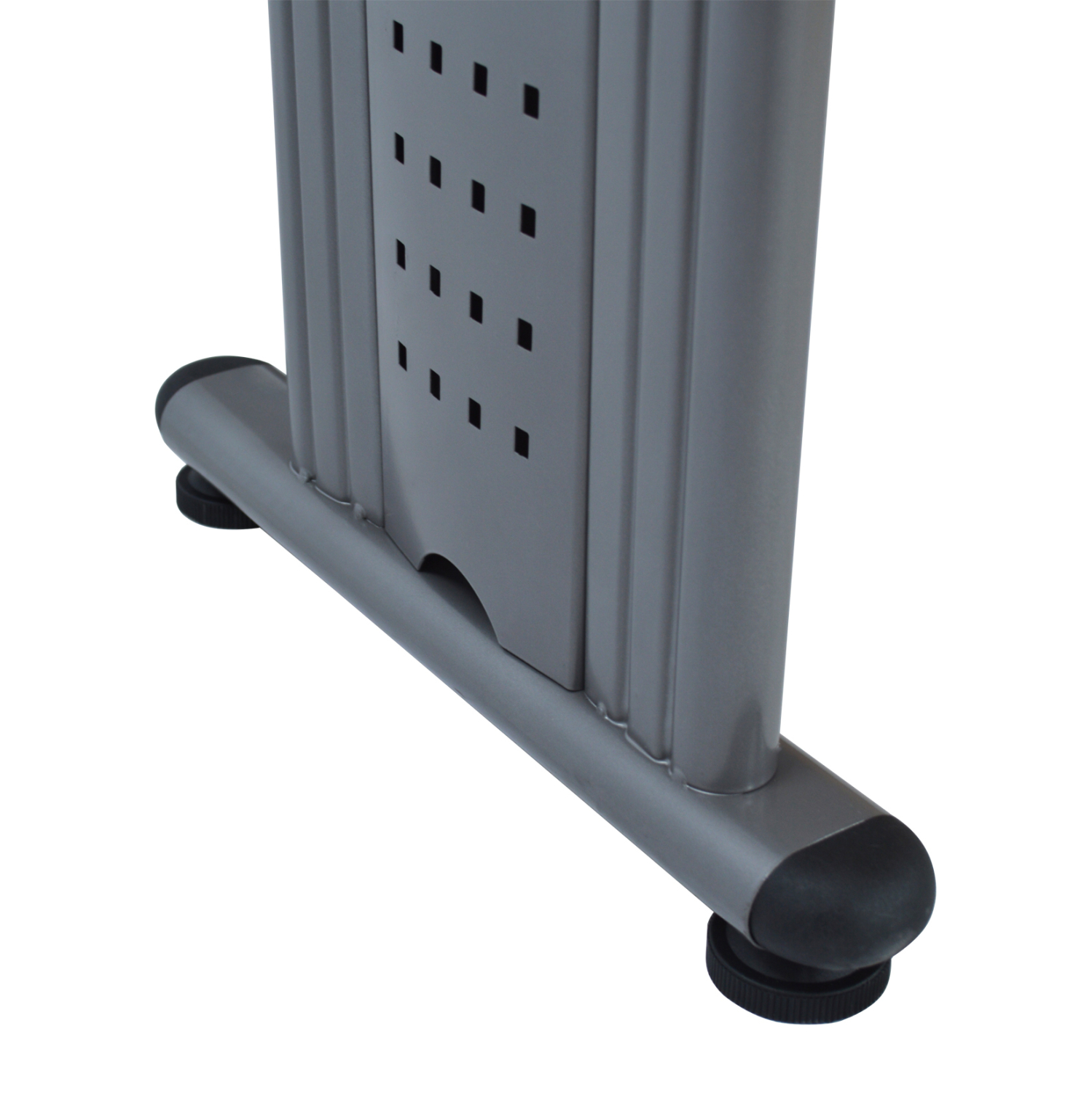 Με δύο εισόδους καλωδίων και πόδια μεταλλικά 3τμχ(στις 3 γωνίες του γραφείου) σε χρώμα γκρι.<br />