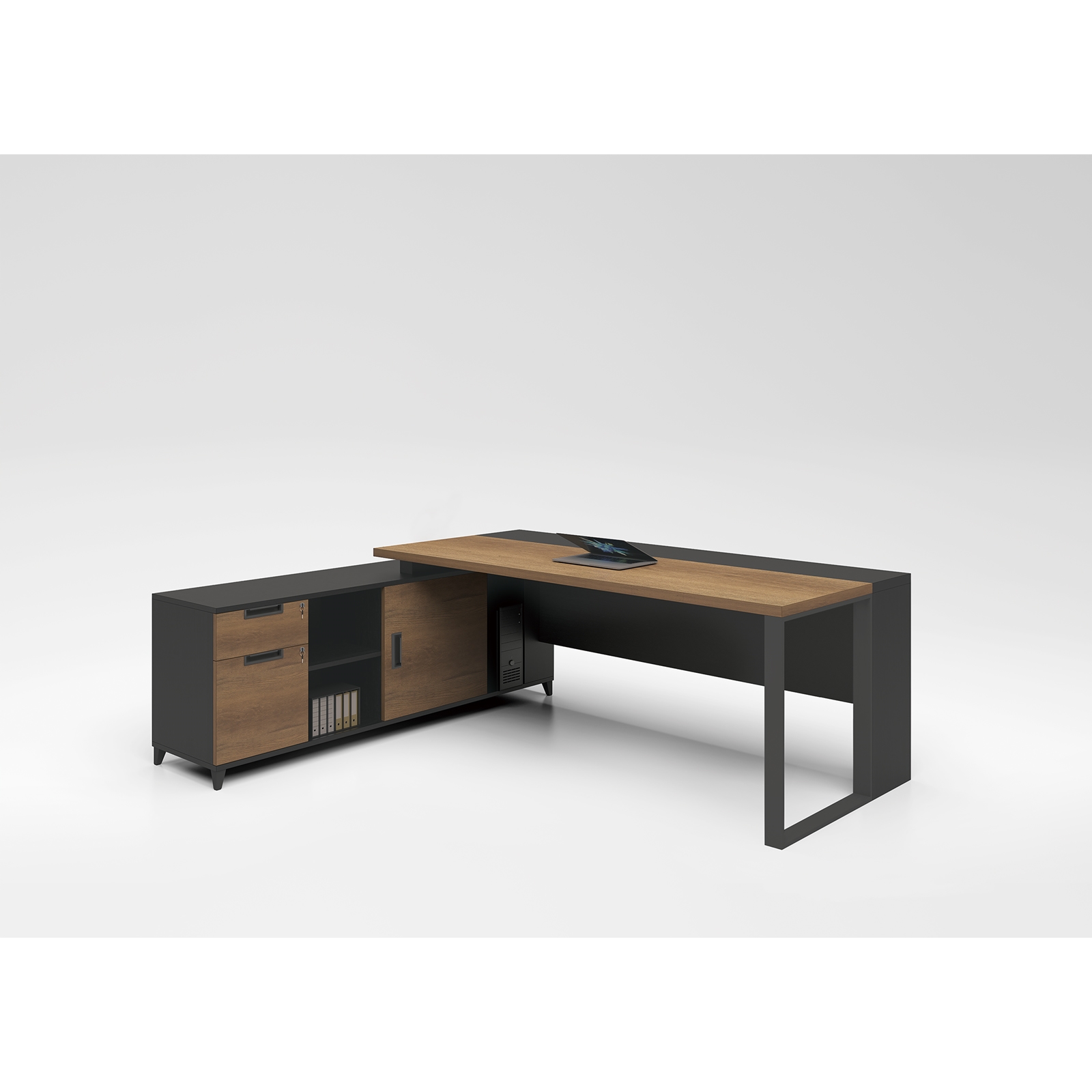 Γραφείο Γωνία Αναστρέψιμη Απόχρωση : Καρυδί Δρυς - Μαύρο