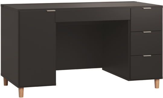 Γραφείο εξαιρετικά πρακτικού και λιτού σχεδιασμού, για ένα όμορφο και μοντέρνο χώρο εργασίας. - Αποθηκευτικός χώρος στο πίσω μέρος του γραφείου για καλώδια, φορτιστές κτλ - Το εσωτερικό του γραφείου είναι στο χρώμα του σκελετού - 1 ευρύχωρο συρτάρι κάτω από την επιφάνεια εργασίας - 3 συρτάρια στο πλάι που καλύπτουν στο μέγιστο δυνατό το βάθος του γραφείου - 1 ντουλάπι με 1 εσωτερικό ράφι, προσαρμόσιμου ύψους - Στο μαύρο και στο λευκό χρώμα οι επιφάνειες καλύπτονται με βερνίκι για απαλότερη υφή - Αθόρυβο κλείσιμο αποθηκευτικών χώρων - Αντοχή στην φθορά και στην υγρασία - Υψηλή ποιότητα κατασκευής - Ευρωπαϊκής προέλευσης