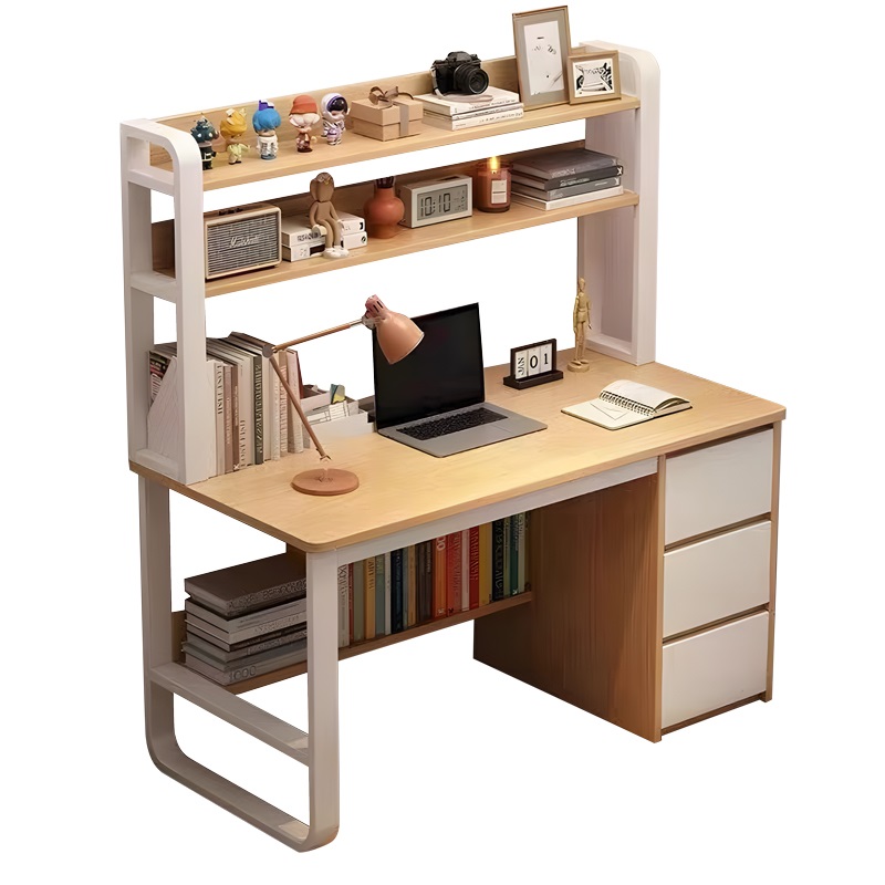 Γραφείο Soco pakoworld με ραφιέρα-MDF φυσικό-λευκό 120x50x147εκ
