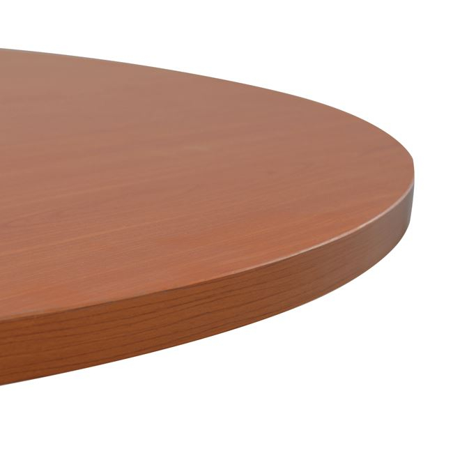 Επαγγελματικό γραφείο συνεδριάσεων με στρόγγυλη επιφάνεια, κατασκευασμένο από ανθεκτική μελαμίνη σε κερασί απόχρωση και μεταλλική βάση σε γκρι απόχρωση.<br />