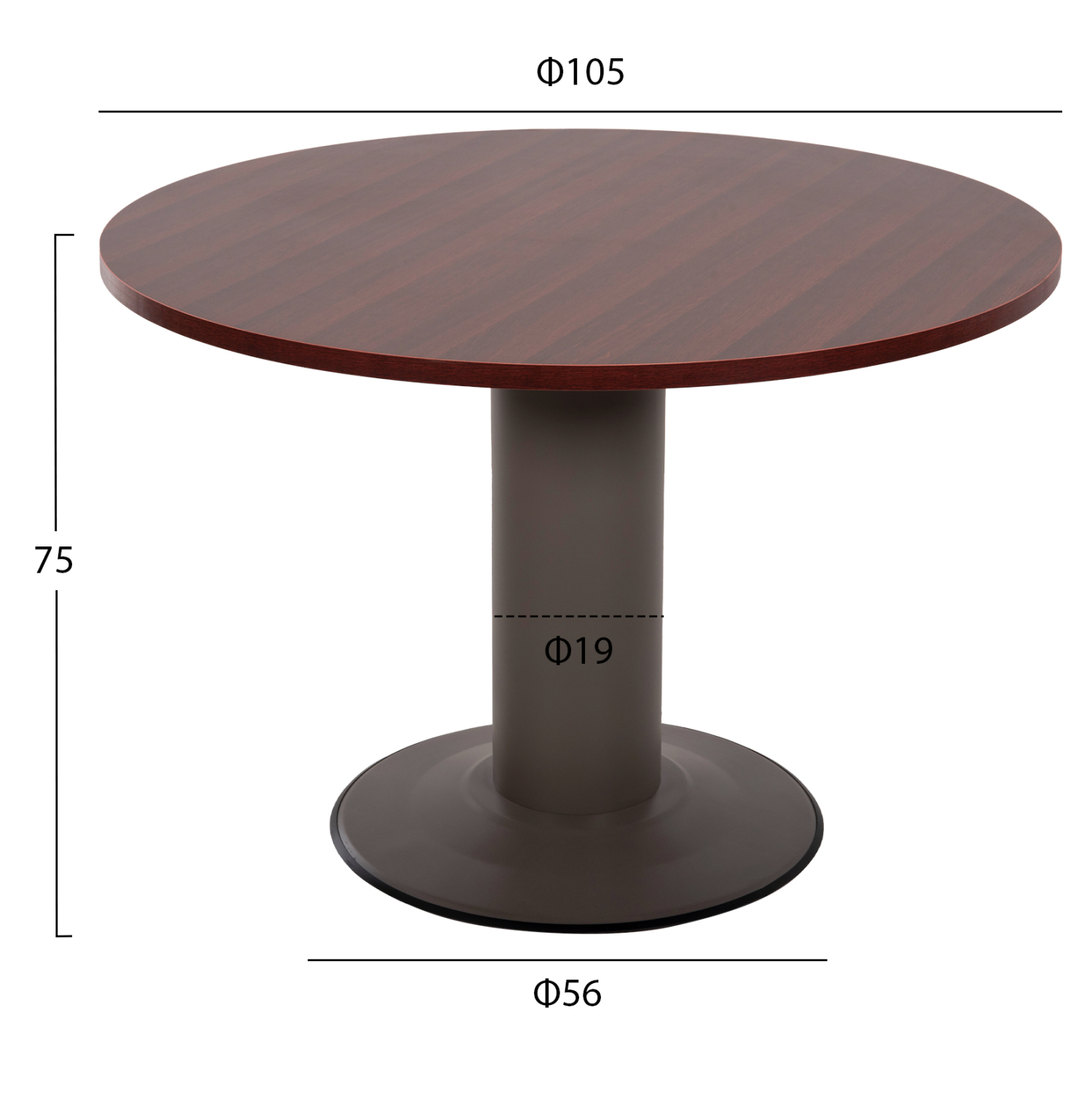 Επαγγελματικό γραφείο συνεδριάσεων με στρόγγυλη επιφάνεια, κατασκευασμένο από ανθεκτική μελαμίνη σε wenge απόχρωση και μεταλλική βάση σε γκρι απόχρωση.