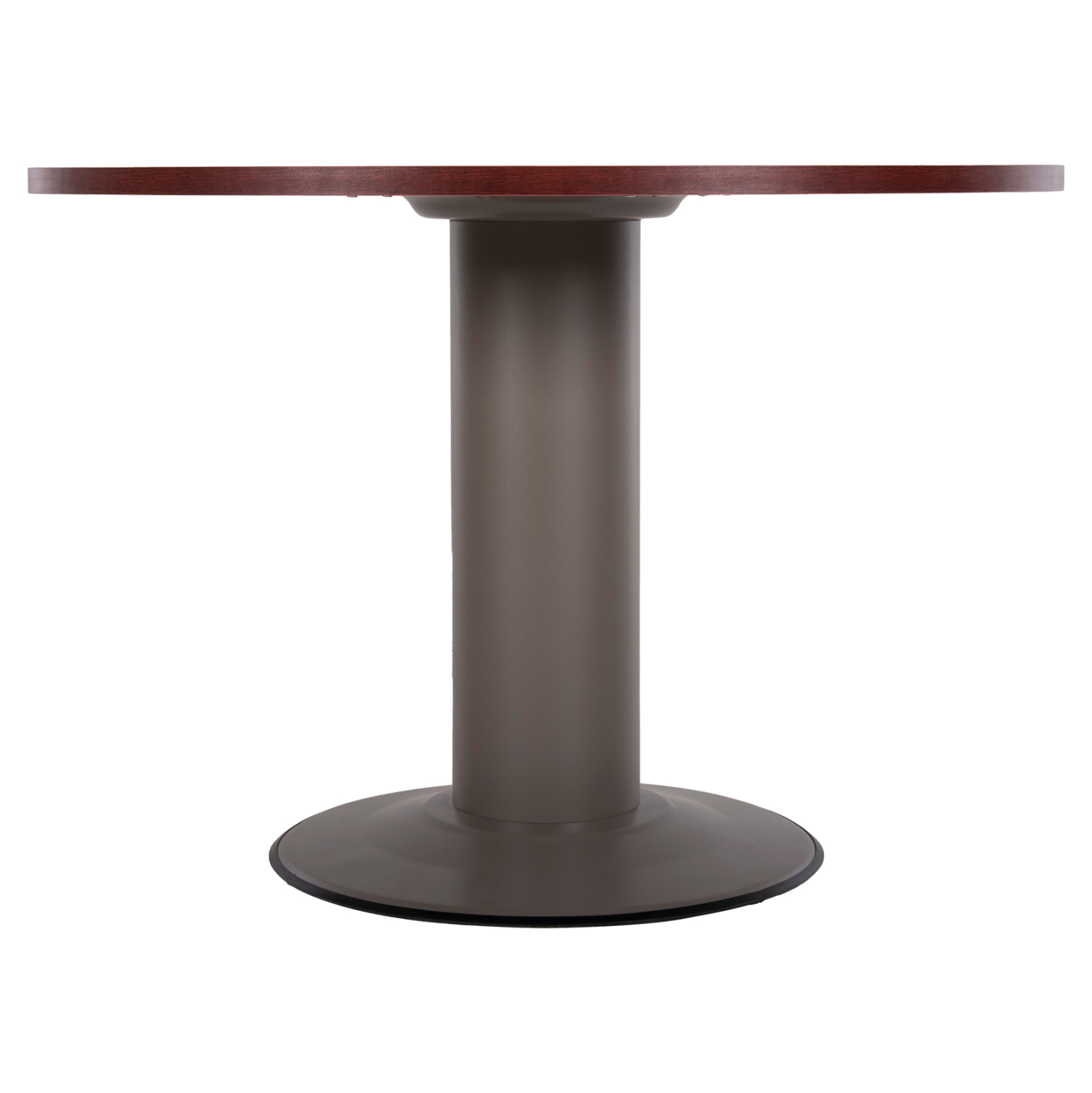 Επαγγελματικό γραφείο συνεδριάσεων με στρόγγυλη επιφάνεια, κατασκευασμένο από ανθεκτική μελαμίνη σε wenge απόχρωση και μεταλλική βάση σε γκρι απόχρωση.