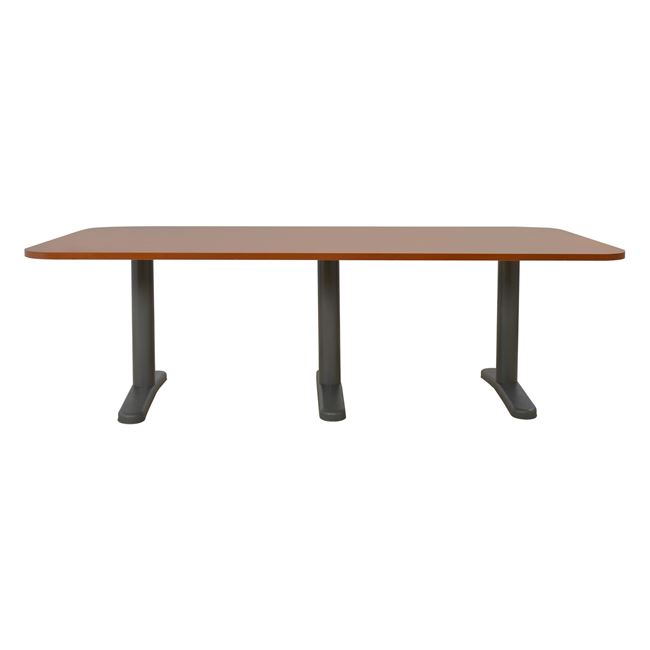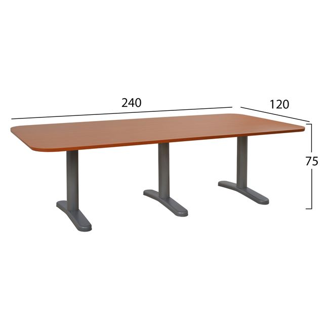 Επαγγελματικό γραφείο συνεδριάσεων, κατασκευασμένο από ανθεκτική μελαμίνη σε κερασί απόχρωση και μεταλλικά πόδια σε γκρι απόχρωση.