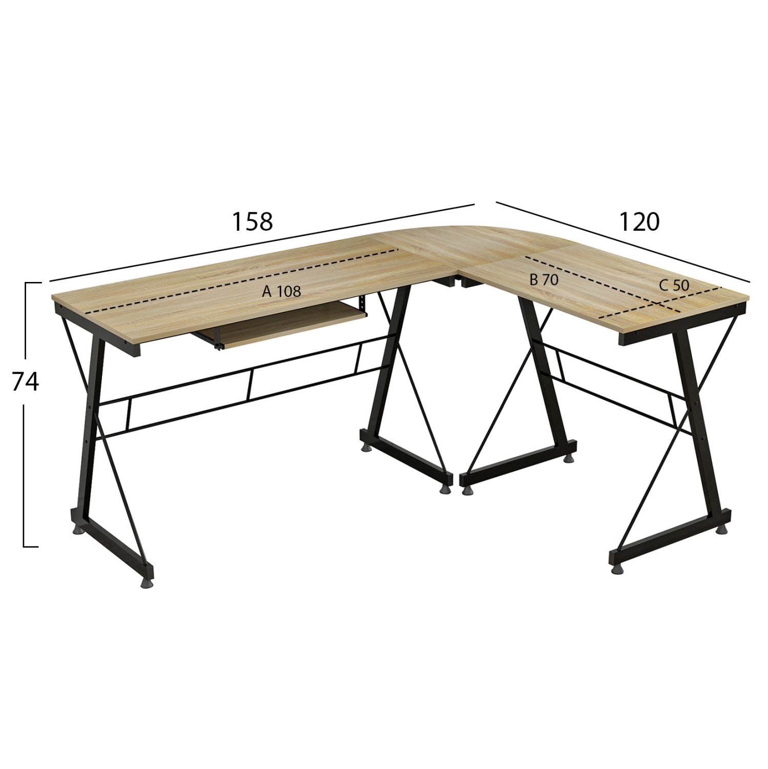 ΓΩΝΙΑΚΟ ΓΡΑΦΕΙΟ SONAMA ΕΠΙΦΑΝΕΙΑ ΜΕ ΜΕΤΑΛΛΙΚΟ ΣΚΕΛΕΤΟ HM2127.01 158Χ120Χ74εκ.
