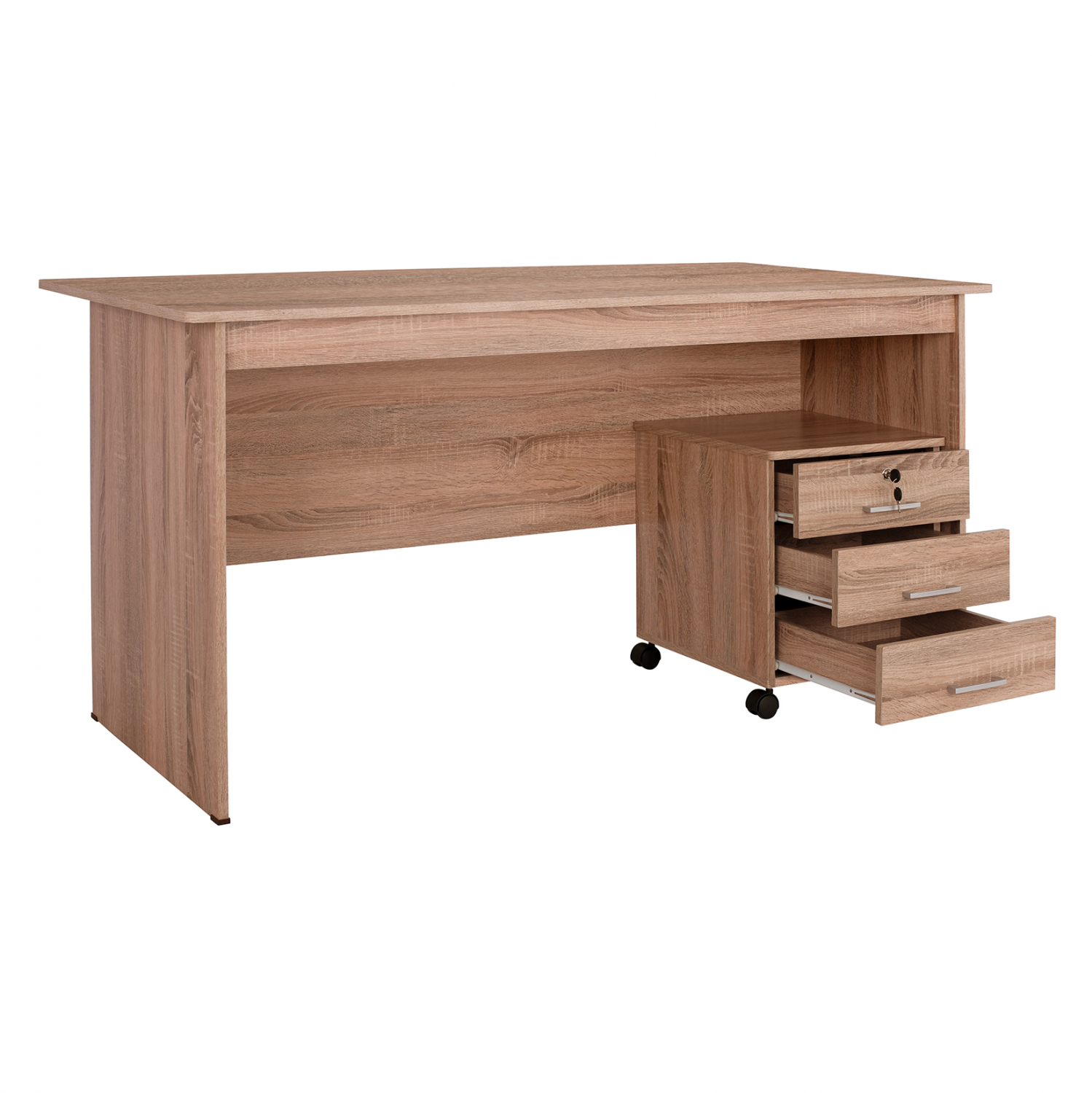 Σετ γραφείου 2 τμχ που αποτελείται από γραφείο μελαμίνης με κομψό και λιτό σχεδιασμό, κατασκευασμένο από ανθεκτική μελαμίνη σε sonama απόχρωση και συρταριέρα γραφείου σε sonama απόχρωση, με κλειδαριά.<br />